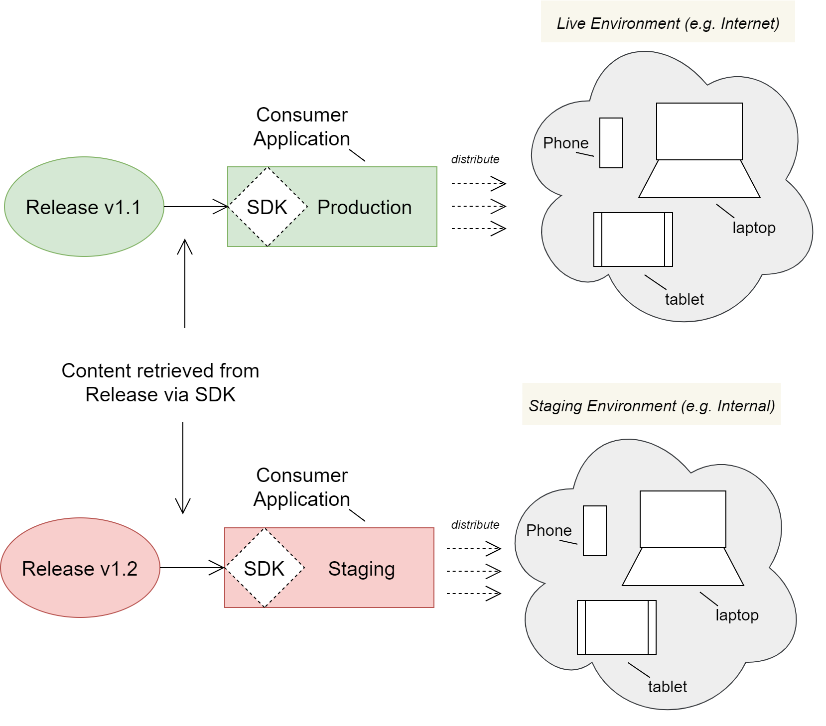 There is usually a ‘staging’ and a ‘production’ Consumer Application, for example, although Projects may be configured differently.