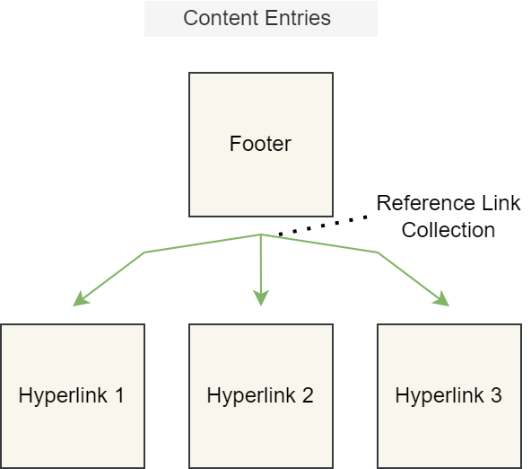 With Reference Link Collections, you can link to multiple Content Entries. For example, to link several images into a carousel or multiple hyperlinks into a footer.