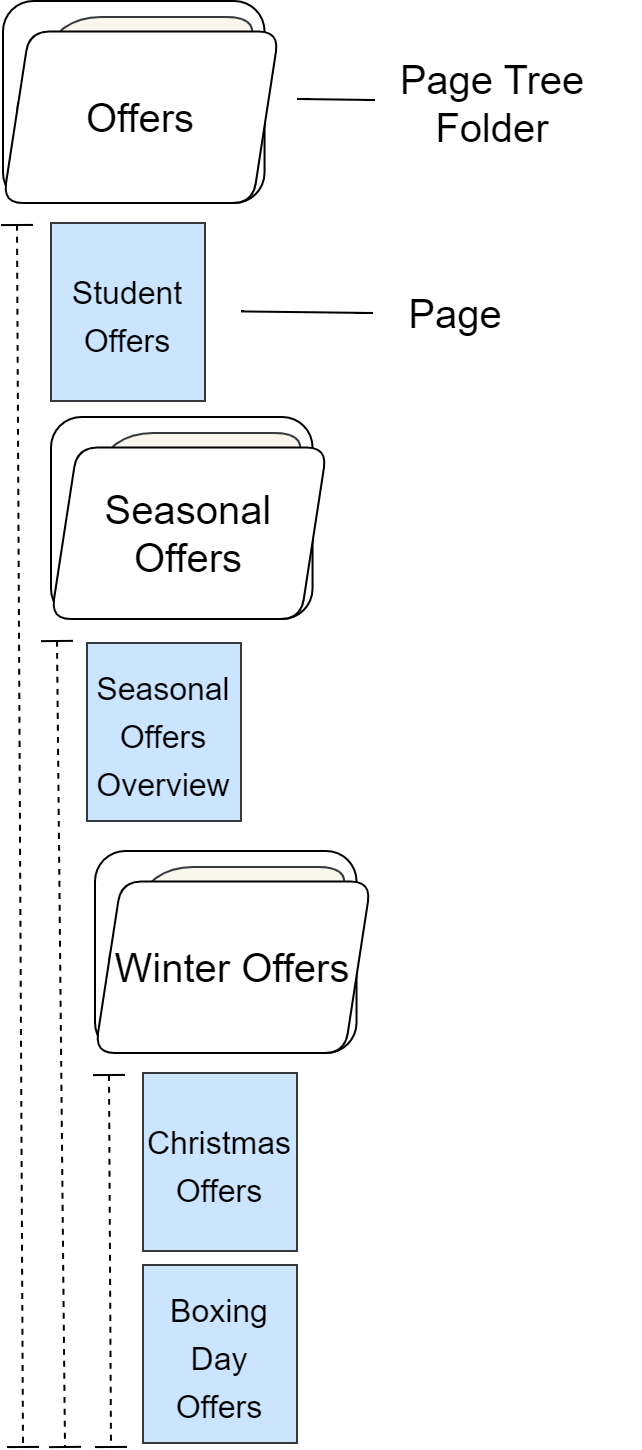 The following diagram shows how the Page Tree is a hierarchical structure of Pages and Page Tree Folders.