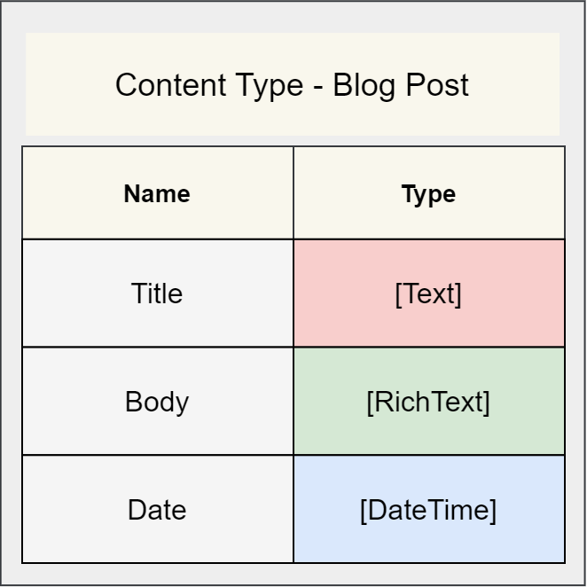 As a developer, you design Content Types as templates that content editors can use to create content. For example, you might develop a Content Type for a hero banner, footer, or blog post. Content editors utilise these as the basis for Content Entries, the units of actual content.