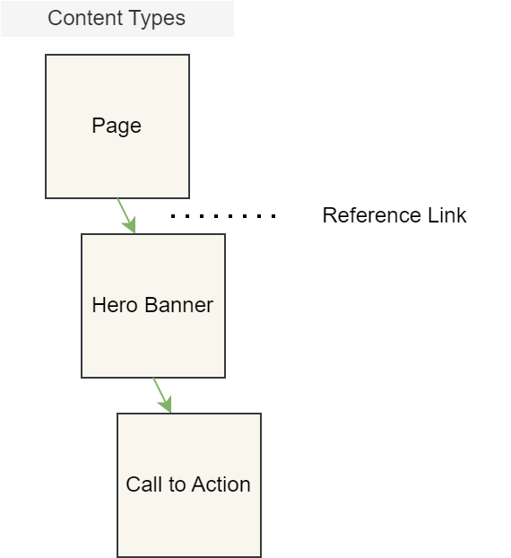 Content Types can be linked together using a special field called a Reference Link. This allows you to compose new Content Types from existing ones. Doing so creates a chain of Content Types (and this permits their Content Entries to be similarly linked). However, keep in mind that you can only link up to 10 Content Types and circular references are not allowed.