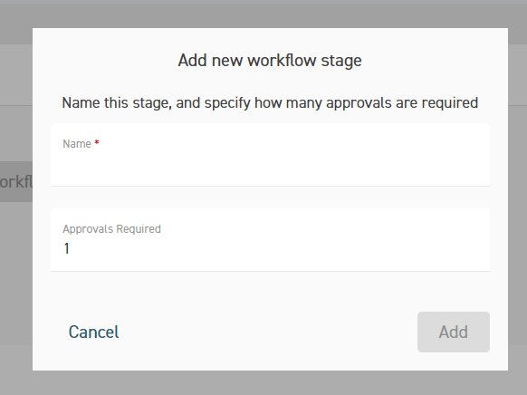 Enter a name for the stage and set the number of approvals required. Press Add.